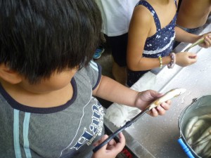 8月9日~11日、奥多摩(中茶屋キャンプ場)で2泊3日のビーバー・カブ隊合同夏キャンプ。キャンプ場に到着し開所式の後、最初のチャレンジ「ニジマスの掴み取り」。捕った魚を自分で調 理し、「いただきます」の意味をかみしめて食します。