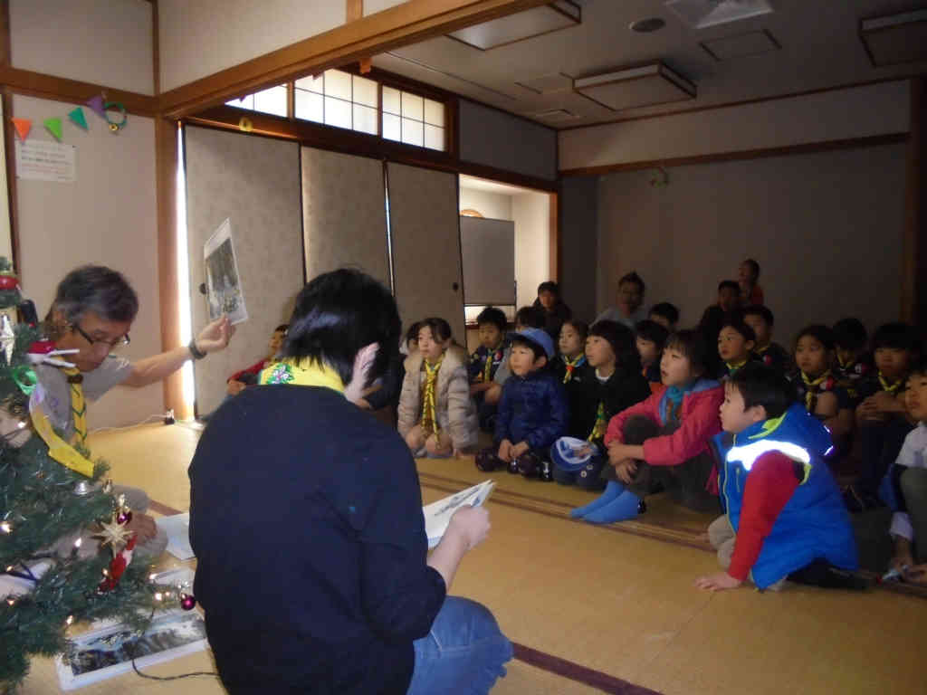 12月20日(日)9:00、生田中学校特別創作活動センターに58名が集合!今日は、毎年恒例のビーバー隊・カブ隊合同隊集会=クリスマス会です。
