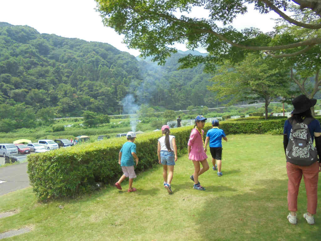 お父さん・お母さん・兄弟に紙漉き体験で作ったはがきをだしましょう。08:30朝礼、08:45ハイキングスタートです。