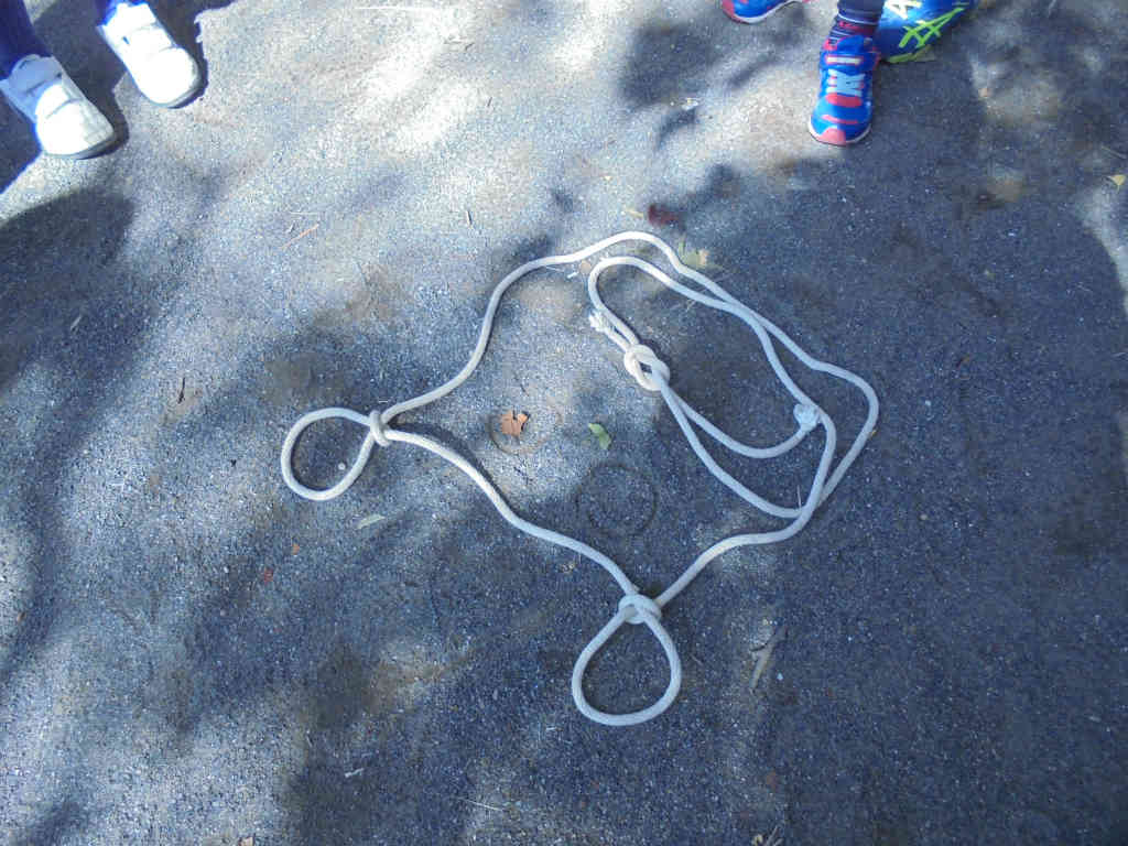 続いてのゲームは、ロープで動物を作ろうです。結びを2種類以上入れて動物を完成させて下さい!