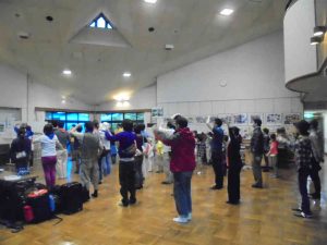 雨天の為ハイキングは中止となりましたが、室内でゲーム大会。手旗を覚えたりロープを使った班対抗ゲームで大盛り上がり。