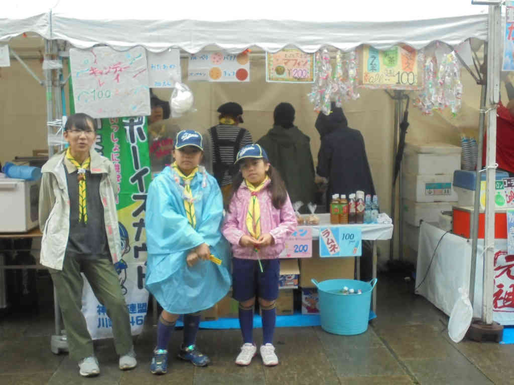 カブスカウト隊は、前回の隊集会で作ったキャンディ―レイの販売お手伝いです。一生懸命作ったキャンディ―レイ、売れたかな?