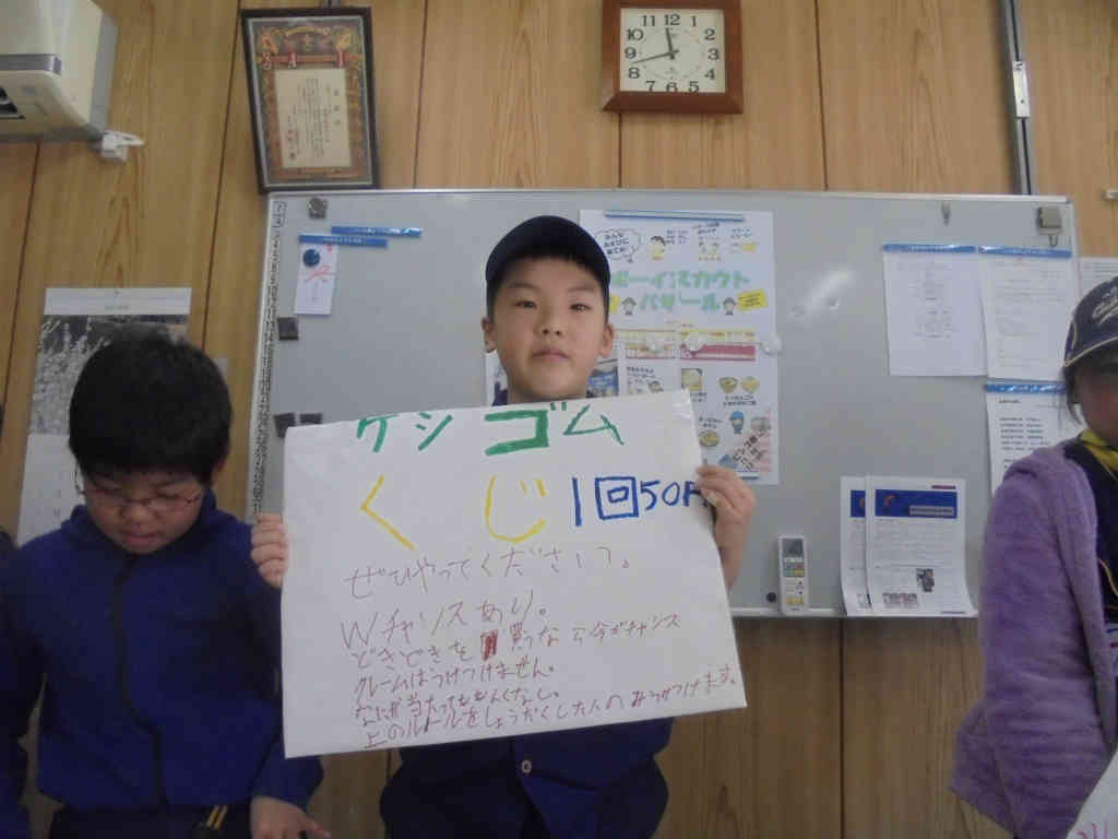 今日の隊集会は、今月26日にJAセレサ生田支店駐車場スペースで開催される「46バザール」の準備です。カブスカウト隊は、スーパーボール・消しゴムくじの販売お手伝いと募金活動を行います。