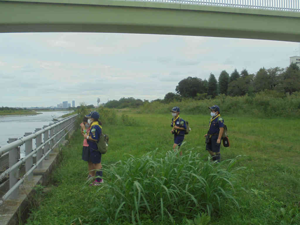 開会のセレモ二ーで今月のソング「ジロッポ」を歌い終え、三田第4公園から生田駅に移動します。今日は、多摩川河川敷の生き物観察と清掃活動です。電車の乗って登戸駅を目指しましょう。