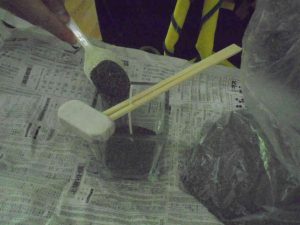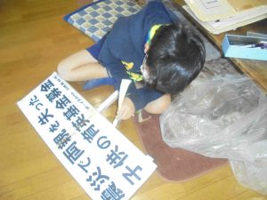 注ぎ終えたら30分ほど固まるまで待ちます。この時間を利用して来月行う募金活動で使う募金箱、パネルなどの補修をしておきましょう。