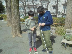最後になわ結び(胴もやい結び、本結び、引きとけ結び、8の字結び)を練習(復習)しました。
