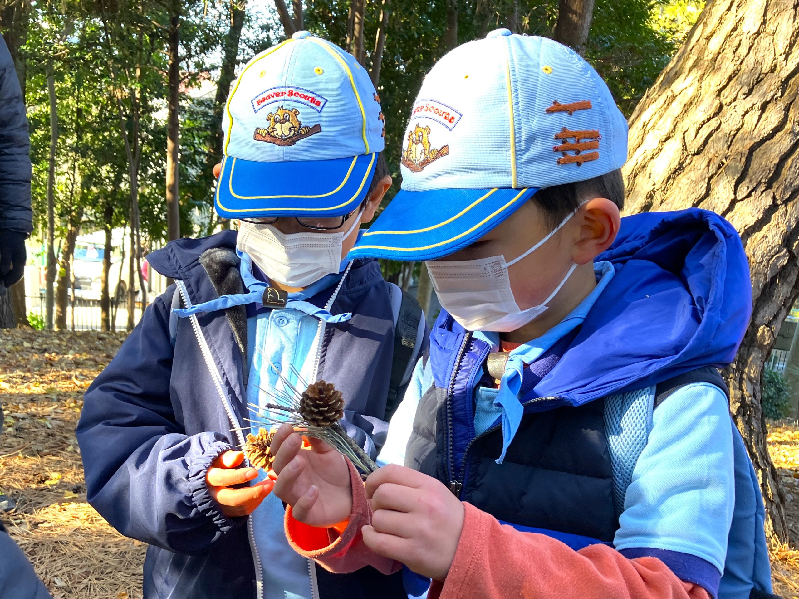 「小枝章」のみんな、がんばったね。「小枝章」4ほんめの記念品は「おおきな松ぼっくり」だ!