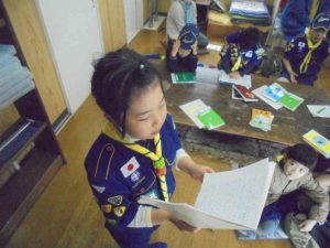 くま(小5)、しか(小4)スカウトは、予め家庭で調べてきた国の文化や習慣、名産などを発表してくれました。