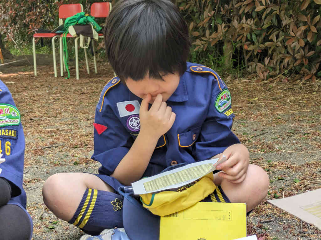 4月21日(日)9時30分、三田第4公園:隊集会「基礎訓練:世界の国々」が始まりました。