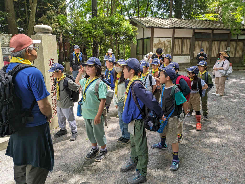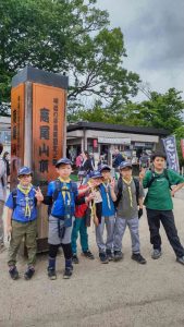 昼食を終えてボーイスカウトにゆかりのある仏舎利塔について隊長からお話がありました。また、東日本大震災の募金活動を継続していますが、慰霊碑の前で黙祷です。