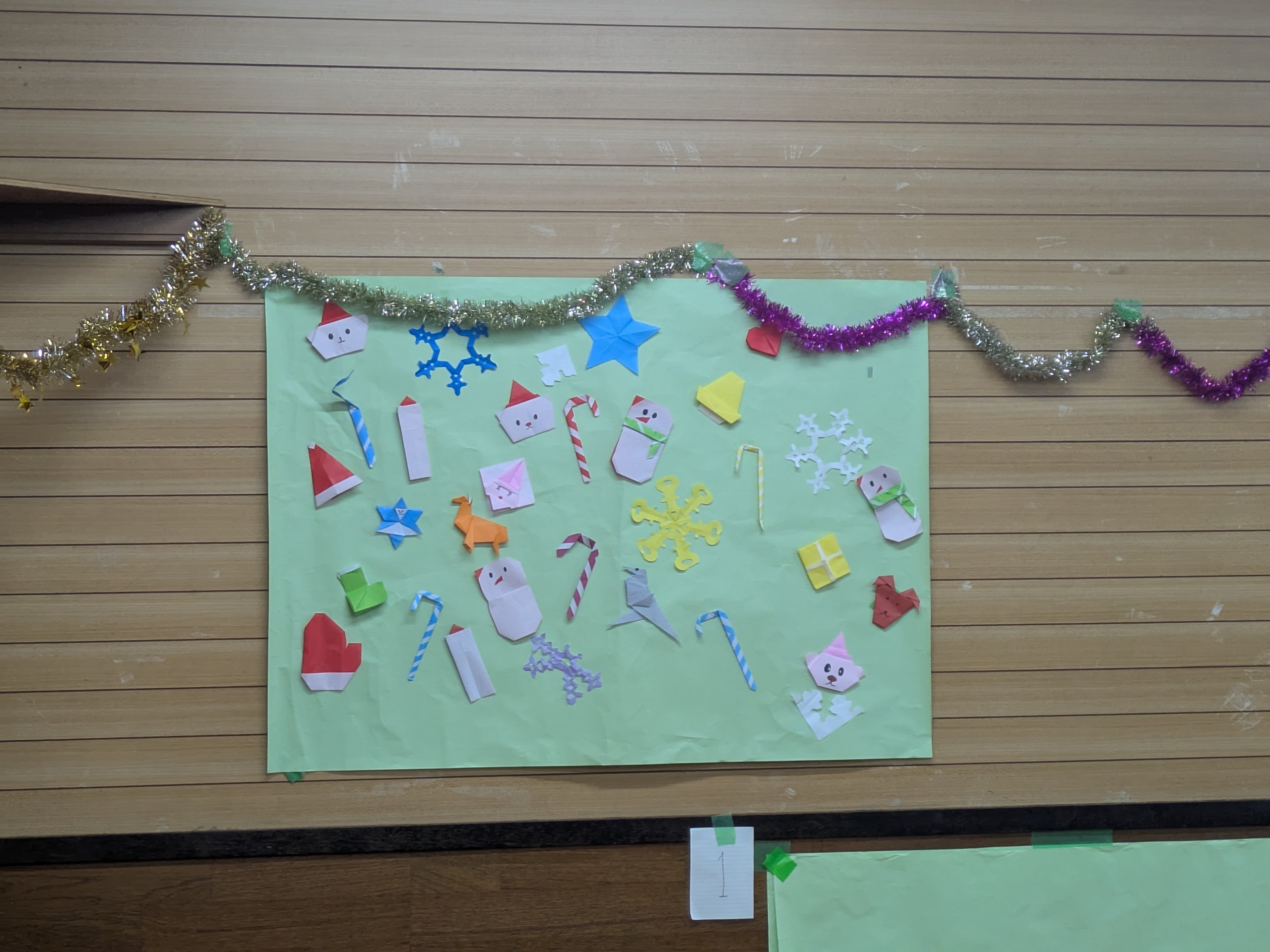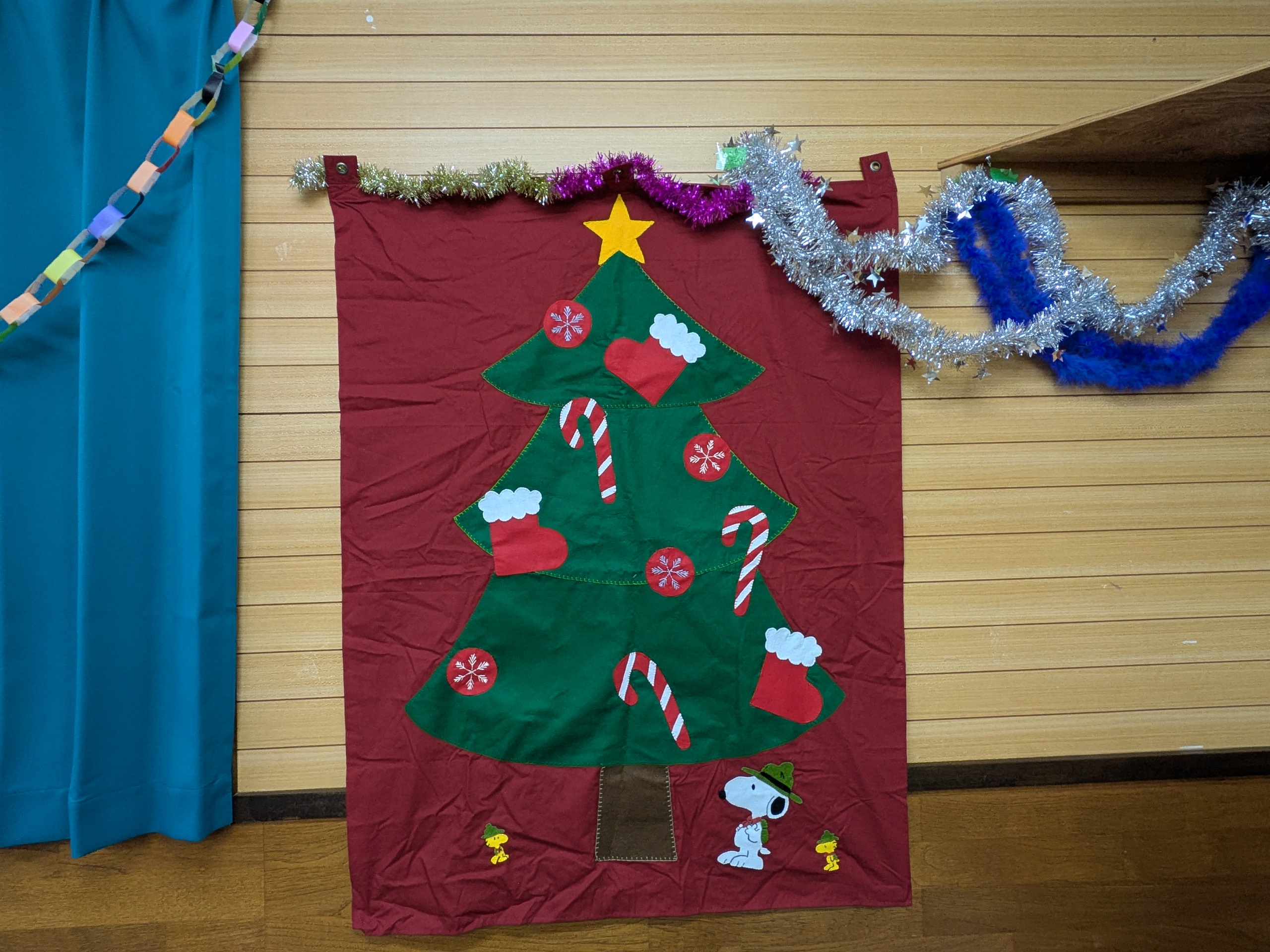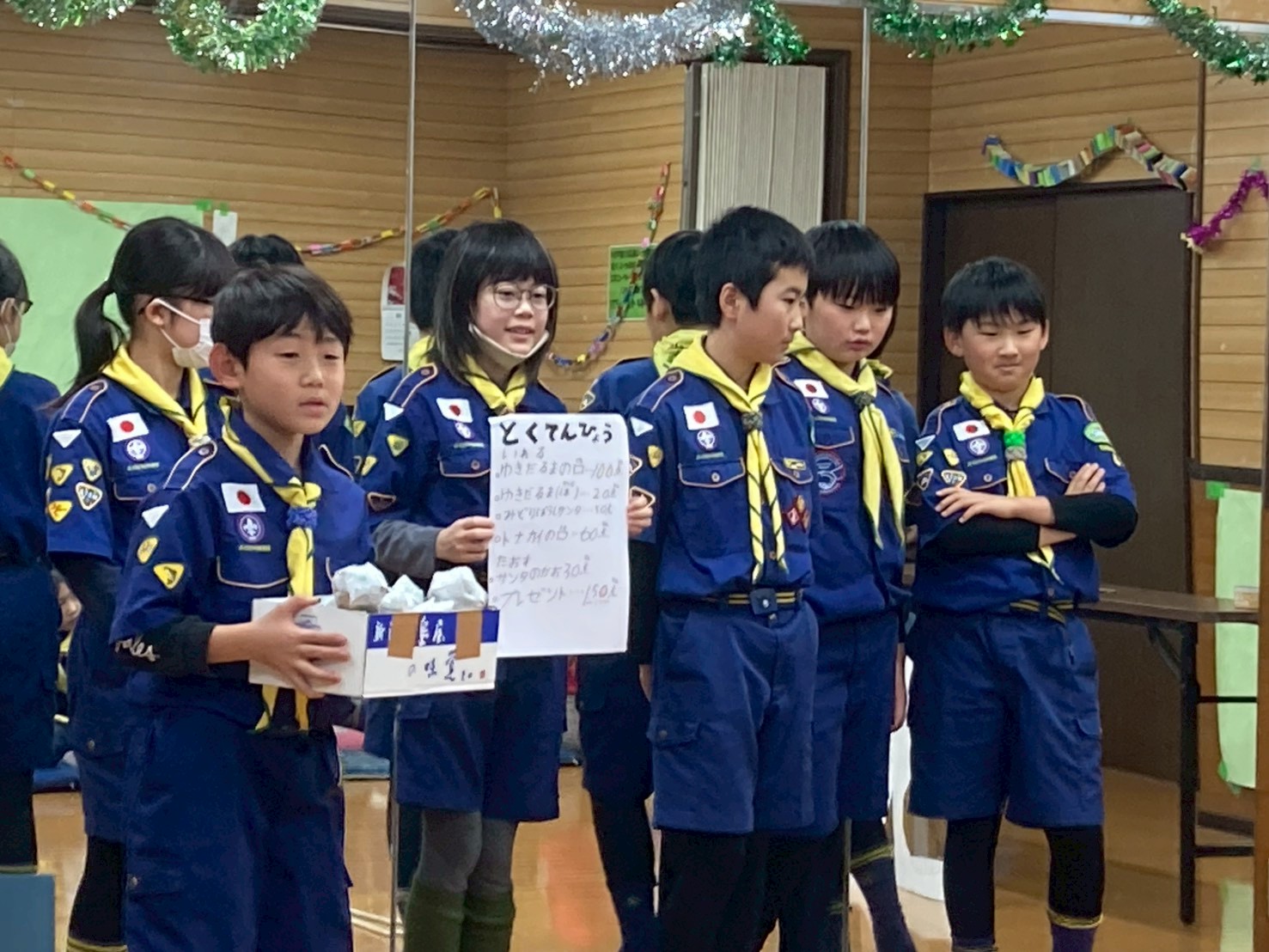 クリスマス会場には、11月30日(日)のカブ隊隊集会で制作したツリーなどが飾られていました。