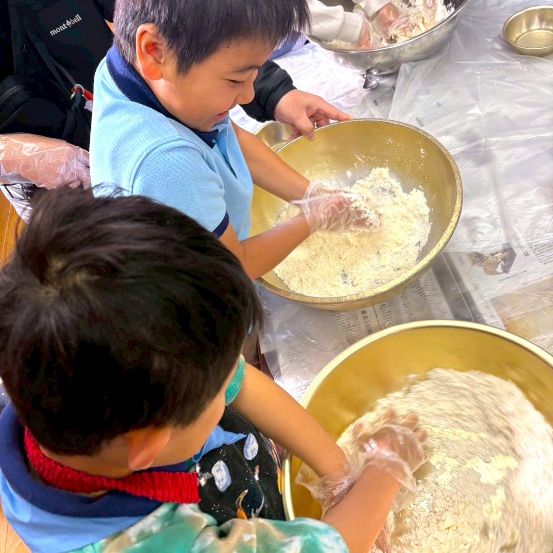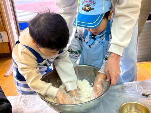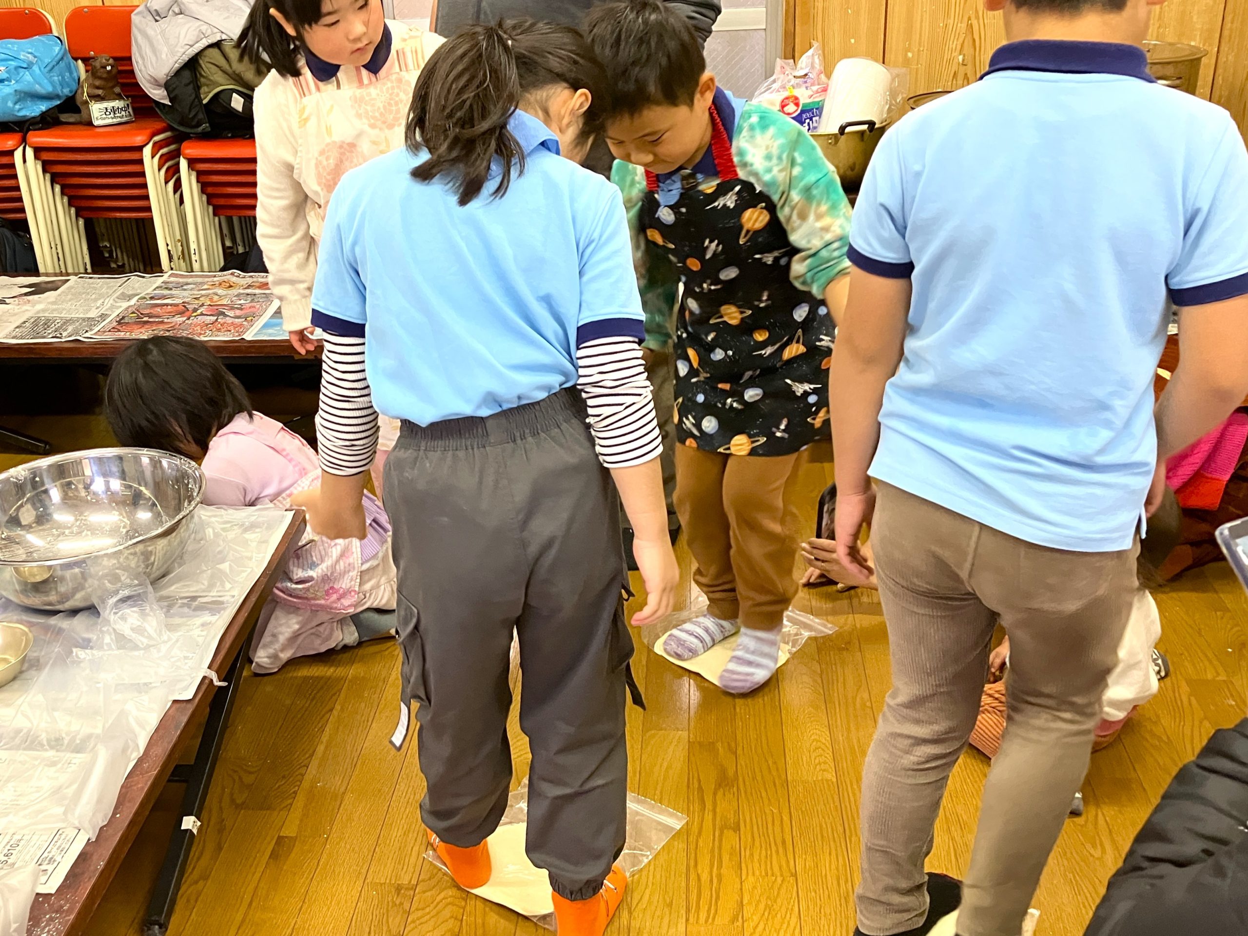 ざいりょうをまぜて、こねて、こねて、こねて、