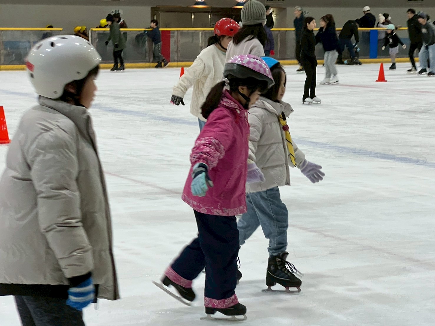 ヘルメットもかぶり準備OKです。10時45分、スケート訓練開始!
