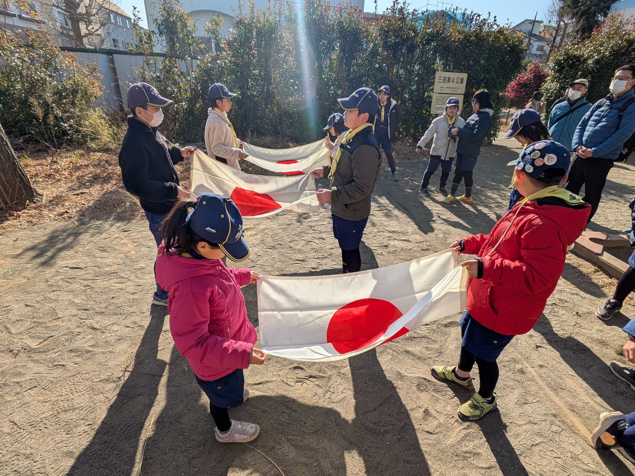 続いて国旗のたたみ方、ソング訓練も復習。