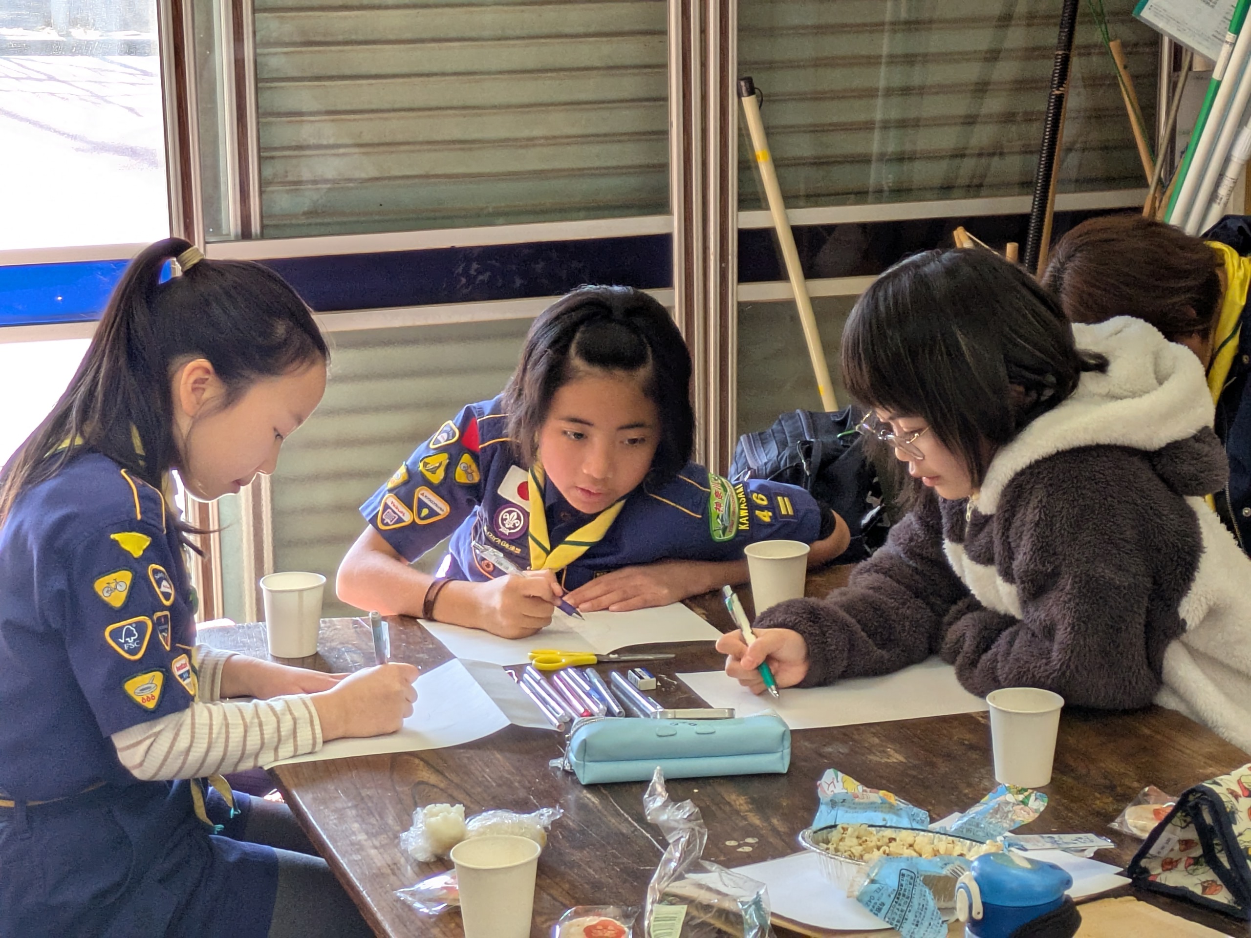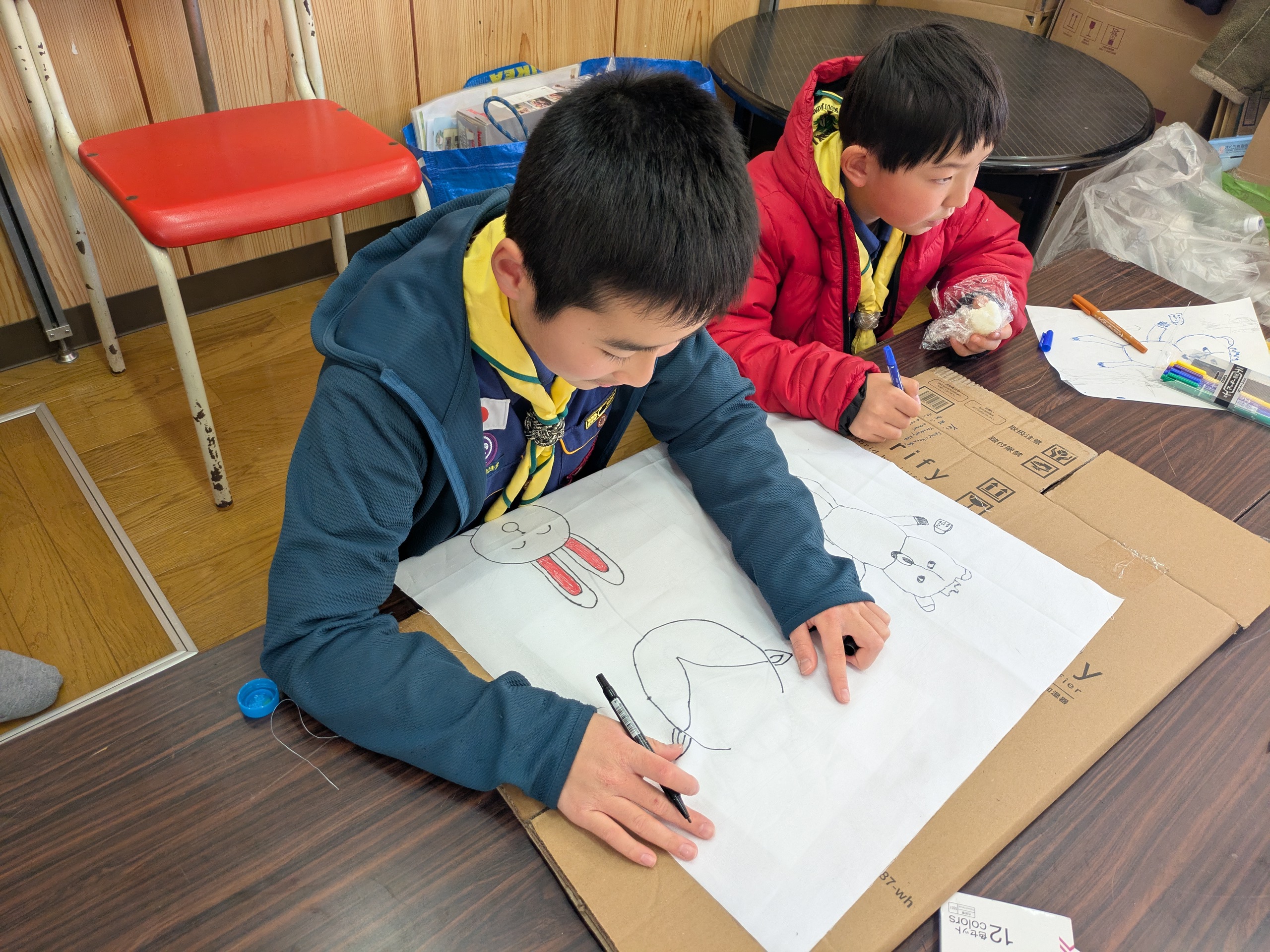 2月1日(日)、月の輪スカウト(5年生)は、隊集会後に班旗を作りました。