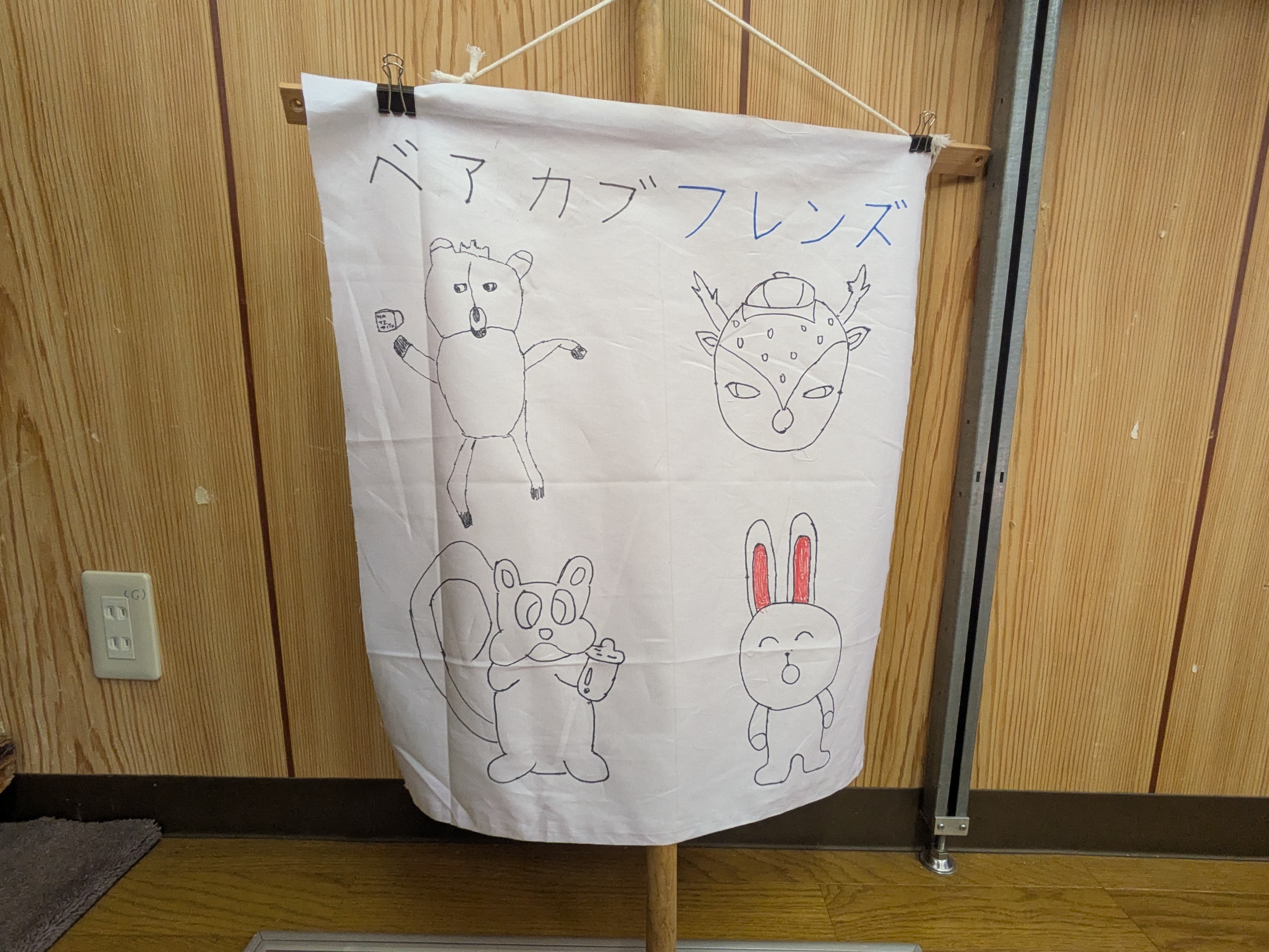 ほっこりとワイルドなイラスト、個性的な旗が完成しましたね。月末は、班旗を持って「月の輪キャンプ」を実施します。
