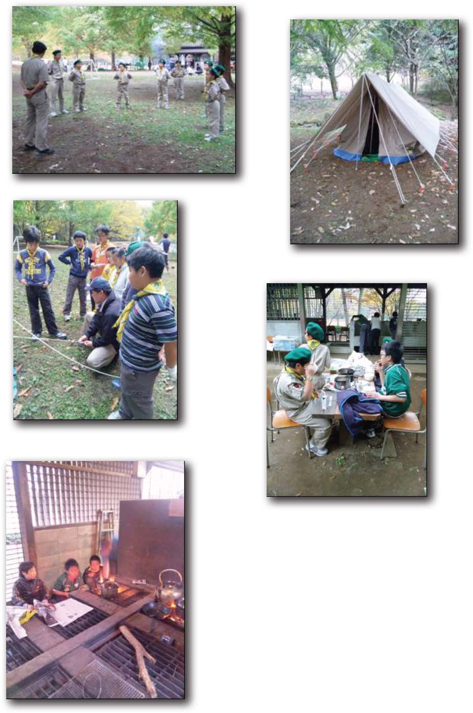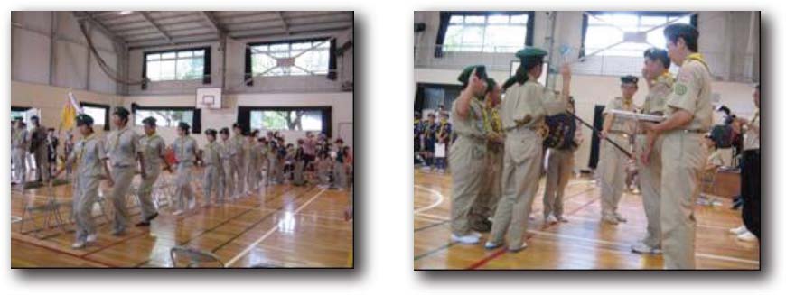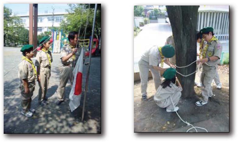 ボーイ隊では入隊・上進後の最初の活動はボーイ隊としての基礎訓練です。集合の仕方、ロープ結び、国旗の掲揚・後納の仕方等を学びました。