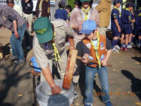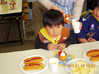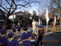 すっかり冷えた頃に、簡易コンロでお湯を沸かして、 ホカホカのスープと温かいココアを飲みました。 「美味しい〜。あったまる〜。」 ☆冬ならではの活動をスカウトたちは思いっきり楽しんでくれました。 |