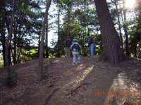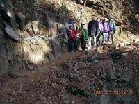 さあ、次は見晴らし台へ向かいます。 ガケがこわいよ、一列に なって慎重に進んで行こうね。 |