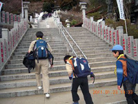 大山ケーブル駅から女坂で下社まで登り、下社で参拝してから神泉を汲みまし た。さらに見晴らし台まで足をのばしてお昼を頂きました。スカウトは最後まで疲れを見せず、元気に活動していました。 さあ、神社まではこの階段をクリアしなければ。 「よし、頑張るぞ〜!」 |