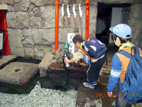 まずは、手水でお清めを。 前回の耐寒ハイクで教わったやり方をきちんと覚えていたので、今日はとまどわずにできました |