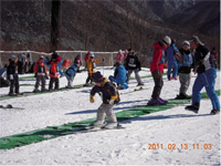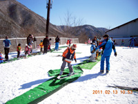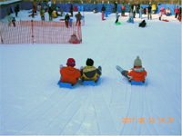 そして、キッズゲレンデでのソリすべり。 うわーっ、楽しい〜〜♪ |